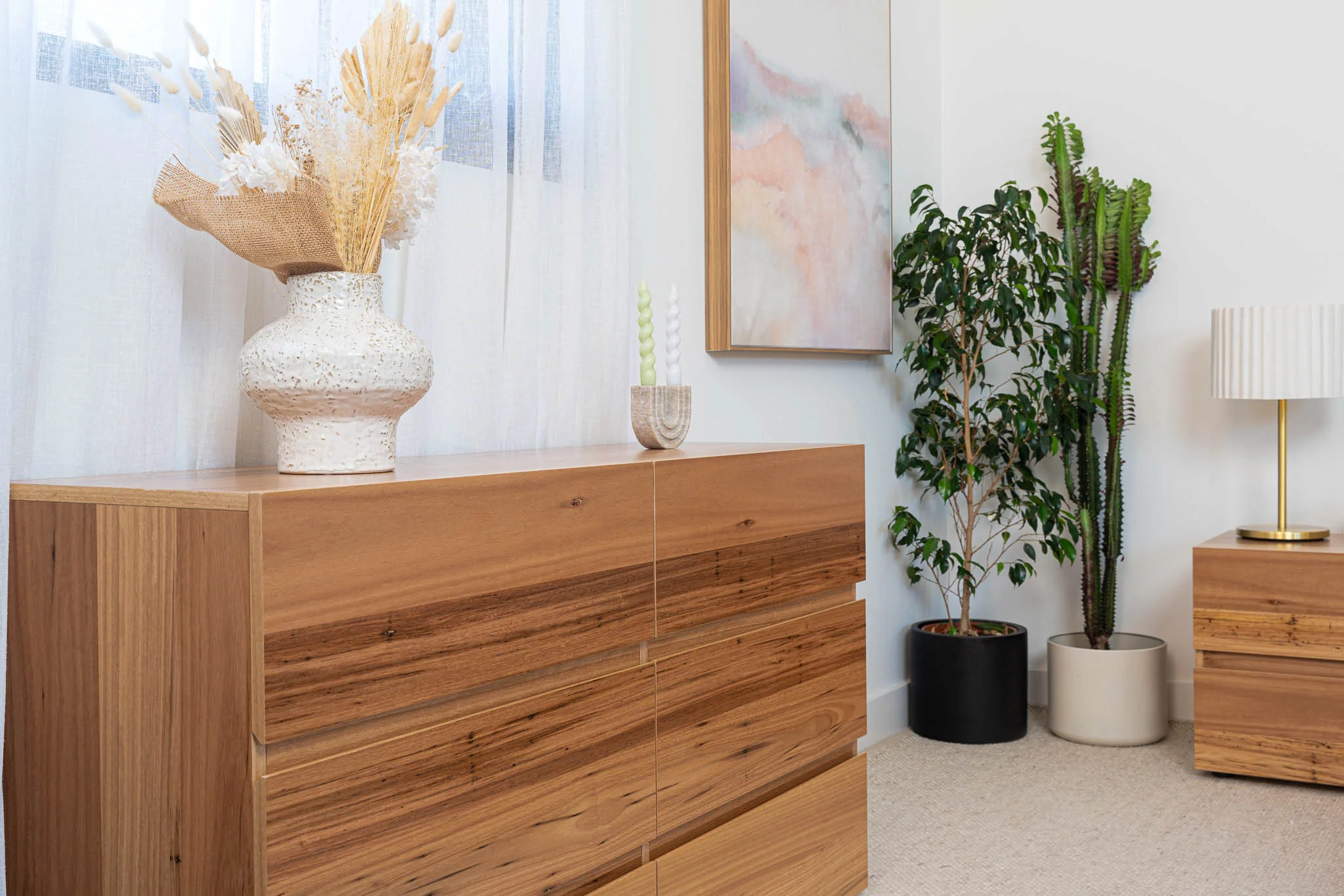 Natural timbers may exhibit variances in grain, colour and texture, sometimes visible knots, filling and butterfly joints will be evident and can move, crack or change colour with age. These variations are normal characteristics of all timber species and not considered faults.