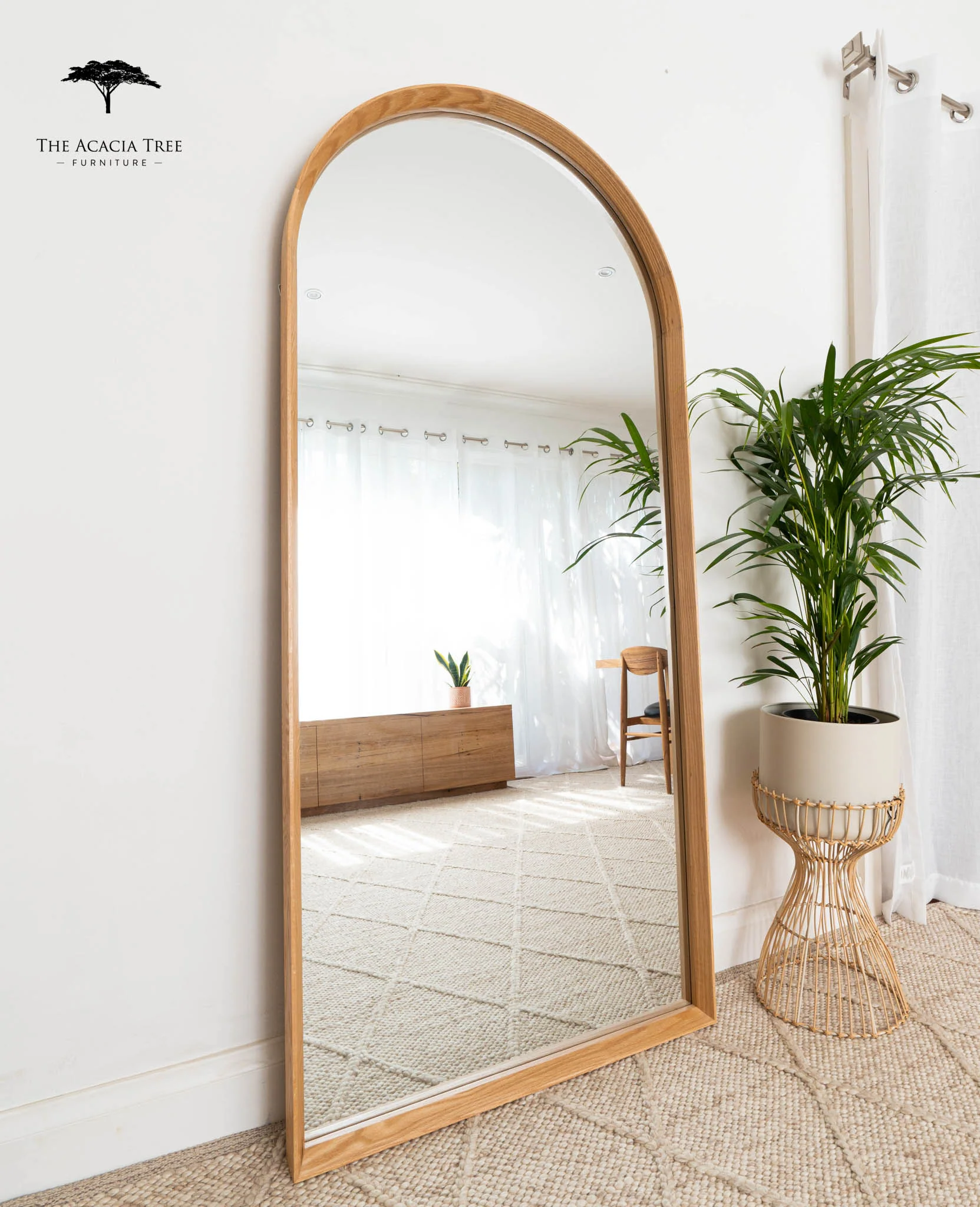 Ingrid American Oak Full Length Arch Mirror
